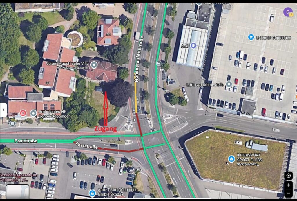 Anmerkung: Die Zufahrt von der B10 erfolgt über die Heininger Str. Weiter zum Stadtplan mit Google-Maps